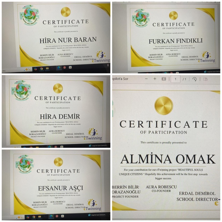 E Twinning Projesi Beatiful Souls Unique Citizens kapsamında öğrencilerimiz proje sonucunda sertifikalarını aldılar. Proje sürecinde büyük bir emek ve özveri ile çalışan öğrencilerimizi tebrik ederiz.